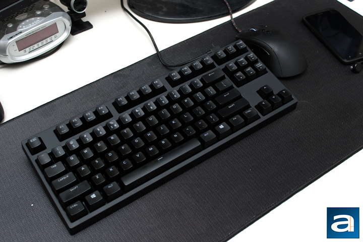 When I first tried this keyboard, I had no idea what to expect. My past few keyboards have all been mechanical Cherry MX keyboards, including MX Brown, Blue, and Red. First thing to say is after reviewing many keyboards here at APH Networks, I can attest to the fact it takes a while to adjust to different key switch technologies. After using one thing for so long, you get used to one type of key, and switching requires some time. However, after using the Cooler Master Storm NovaTouch TKL to type three reviews including this one, there are a few observations I can make. For one, the low actuation force reminds me quite a bit of the Cherry MX Red. I often found myself accidentally setting off keystrokes despite only resting my hands on the keys. In addition, after the tactile push at the very beginning of travel, the rest of the resistance is practically unnoticeable. These keys are also quite a bit quieter than Cherry MX Blues, but not as quiet as MX Reds. Finally, when you bottom out the key, its feeling is much nicer, as you do not hit hard plastic, but rather you feel the rubber of the membrane push back. The noise produced is a very satisfying bump.