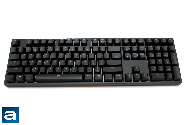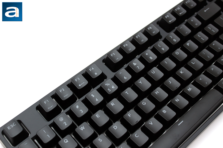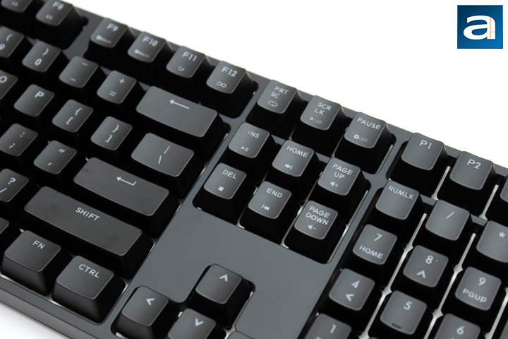 When it comes to layout, the Cooler Master Storm Quick Fire XTi arrived in the standard QWERTY ANSI 104-key American English layout. This is similar to practically all of my past keyboards, but I will highlight a few differences. For one, the Enter key is elongated, with the top of the key becoming a backslash key. Otherwise, the rest of the keys are in its standard place. One Windows key is placed on either side near the Alt button, with an additional Function button on the right side of the keyboard. You may be wondering where the lights for Caps, Num, and Scroll Lock are located, to which I will ask you to be patient as you will see soon enough. One thing I have noticed with the key caps themselves is how easy it is to create smudges. Even slightly damp fingers will create the ugliest fingerprints. I did not have this much of an issue with other keyboards, and I think the key caps could be improved to reduce the amount of smudge displayed.