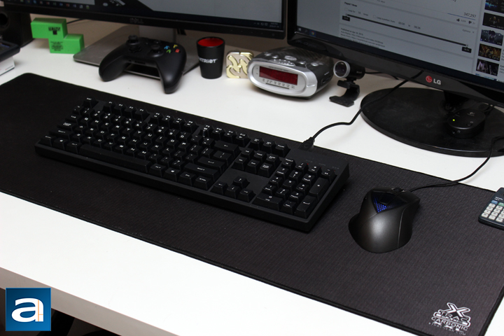 When I first tried this keyboard, I had some expectations in mind, considering this was not my first Cherry MX Blue keyboard. The last Blue switch keyboard I used was the Cooler Master Storm Quick Fire XTi. After reviewing many keyboards here at APH Networks, I can attest to the fact it takes a while to switch between flavors of mechanical switches. For example, I forgot how loud Blue switches could be in general. However, the Cherry MX Blues make this keyboard a pure joy to type on. It also makes you sound a lot more productive than you actually are. Joking aside, the clicky feedback is where the real greatness lies, as it gives a nice audible sound to each press. The Cherry MX Blue switches also provide good tactile feedback. For gaming, it is definitely louder noise in comparison to the Cherry MX Reds, and double pressing may be an issue, depending on the game or the genre of games. As for overall quality of the Cherry MX Blue switch, these are pretty much as I expect from any Cherry switch, which is excellent.