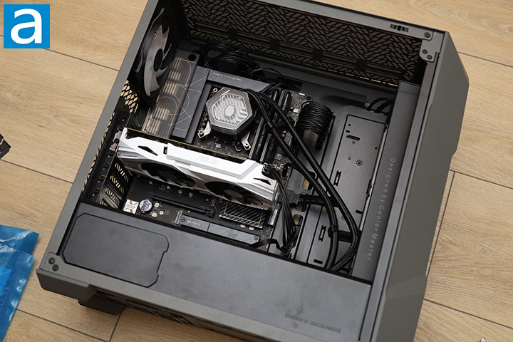 Executing a good cabling job was as straightforward as it could be in the Cooler Master TD500 MAX. The GX II Gold 850W power supply and MasterLiquid 360 Atmos AIO water cooler system was already installed for you from the factory, so a good chunk of the work was already done. Furthermore, the power supply has a 2-stage cable connectors design, which means the first part of the main cables that go to the front -- ATX 24-pin, ATX/EPS 4+4 pin, and PCIe 6+2 pin -- are already pre-routed for you. You just need to connect the second stage of the cables to the socket on the motherboard tray, which is a very convenient feature. The second stage cables are of perfect length for my installation.