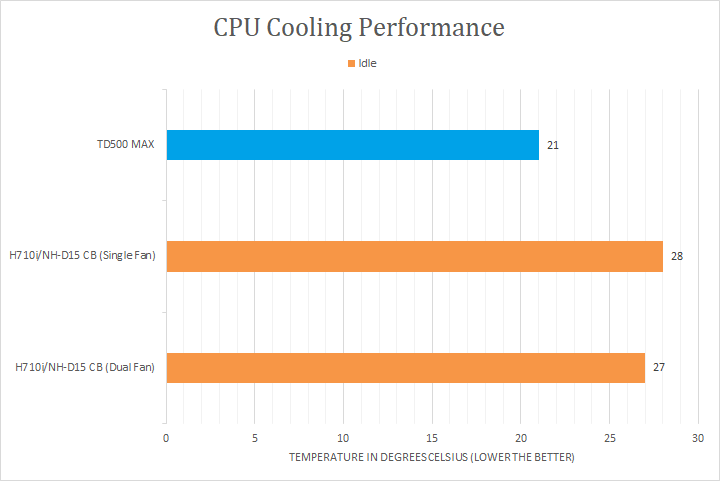 As you can see from our charts above, the Cooler Master TD500 MAX performed very well in our idle test. The CPU in the Cooler Master configuration was brought all the way down to ambient room temperature. Since the idle test is not a good indicator of a CPU cooler's true performance potential, let us look ahead into the load test results.