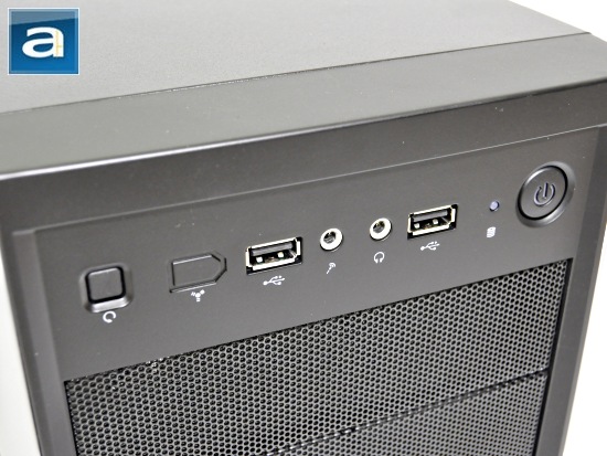 The Cooler Master Elite 371's front panel connection options are quite simple and relatively standard. Since the case is relatively small in terms of dimensions, the front panel connectors are located on top of the 5.25" drive bays. This is nice and easy to access for those who have their case on top of their desk, as well as for those who keep it on the floor. From the right is the power button with the power LED integrated, HDD activity LED, one USB 2.0 port, 3.5mm microphone and headphone jacks, another USB 2.0 port, a blank IEEE 1394a FireWire port, and a reset button. Since the Cooler Master Elite 371 is a budget case, we really cannot expect much beyond the standard array of connections, so there is not much to comment on here.