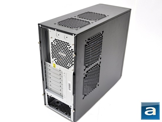 Like most cases, the Elite 371 utilizes a bottom mounted power supply bay. Above the PSU bay is a total of seven PCI slots, which is the standard number for mid-towers nowadays. Above that are the I/O shield cutout and a honeycomb mesh panel for the exhaust fan. From the above picture, you may be able to make out that the exhaust mesh has two mounting points for those who want to install a 140mm exhaust fan to replace the provided 120mm exhaust fan. Lastly, above the exhaust grill are two indents in the metal that can be drilled out for water cooling holes. In this case, I agree with Cooler Master on this decision to not provide two pre-drilled and pre-fitted water cooling holes, since I would doubt that one would use water cooling for their system using a budget case such as the Cooler Master Elite 371 itself. In other words, no one in the right mind would fit a Ferrari with a Hyundai engine (No offence) and vice versa. Besides this, there really is not much to comment on. Cooler Master has done quite a nice job providing us with the necessities of what is needed in a case -- nothing less, nothing more.