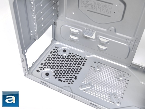 Just above the bottom mounted power supply unit bay are the expansion card slots. The system is not tool-free; and metal braces are required to be snapped off to realize an opening. This is much like removing the inner metal area of the 5.25" drive bays. Also, to complete the installation, a set of screws are provided to securely fasten whatever components you may have into place. The expansion slot covers, however, are not entirely disposable. If you decide you want to take out whatever components you may have, you can simply replace the expansion slot covers back into its place, but this time, with the use of the screws provided.