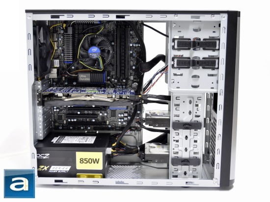 The installation process for the Cooler Master Elite 371 is relatively straightforward and easy. This time, I started by installing my Gigabyte GA-P67A-UD5-B3 motherboard first before moving on to the OCZ ZX Series 850W power supply unit. One quick thing to note here is that you will not be able to install a bottom fan into this case with relatively long power supplies like the one that I have installed.