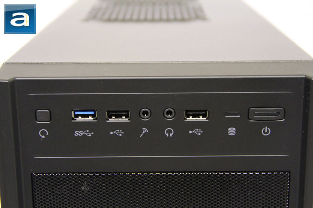 One thing that I pay particular attention to when reviewing a case are the front panel I/O connectors. The reason is because the front panel connections on a chassis provide a host of daily applicable features. First off, we see that the connections are intelligently placed at the top of the front bezel, rather than on the top bezel. Since the Elite 431 Plus is relatively small in dimensions, many users will find themselves placing their system on top of their desk. Therefore, having the I/O connectors at the front of the case is the preferable option. Looking at the image above, I will go through the connections from the left side to the right. Starting us off is a small reset button, single USB 3.0 port, USB 2.0 port, 3.5mm microphone and headphone jacks, another USB 2.0 port, HDD activity light, and lastly, a large power button with the power indicator LED in the middle. Overall, the Cooler Master Elite 431 Plus covers most conventional connections on the front panel. What is surprising here is definitely the USB 3.0 support. Users with newer components can certainly be looking forward to utilize the additional speed.