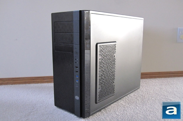 Much like the Cooler Master Elite 371 reviewed in June 2011, the N400 is Cooler Master’s latest answer to the budget case market. Looking at it makes me think Cooler Master has found an excellent balance of price and design. The conservative touch keep the N400 at a low price, but it also stands apart from other run-of-the-mill budget chassis. Personally, I would rather have a case that looks more like a fridge than a tank. Most colleagues here at APH Networks will agree; I quite like this minimalistic take on a computer chassis. The majority of the case is a matte finish, with the few glossy bits being the side of the front panel. This glossy frame adds a bit of panache in what would be otherwise a plain mid-tower. I will say that the glossy frame is very susceptible to fingerprints and smudges as most glossy surfaces are, but this does not detract from the overall look. The Cooler master N400 may not be as flamboyant as some of the past chassis we have received, and this is alright with me. The entire body consists of sheet metal, while the front panel is made of a standard plastic polymer and a metal mesh, but more on this later.