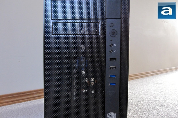 Much like the Cooler Master Elite 371 reviewed in June 2011, the N400 is Cooler Master’s latest answer to the budget case market. Looking at it makes me think Cooler Master has found an excellent balance of price and design. The conservative touch keep the N400 at a low price, but it also stands apart from other run-of-the-mill budget chassis. Personally, I would rather have a case that looks more like a fridge than a tank. Most colleagues here at APH Networks will agree; I quite like this minimalistic take on a computer chassis. The majority of the case is a matte finish, with the few glossy bits being the side of the front panel. This glossy frame adds a bit of panache in what would be otherwise a plain mid-tower. I will say that the glossy frame is very susceptible to fingerprints and smudges as most glossy surfaces are, but this does not detract from the overall look. The Cooler master N400 may not be as flamboyant as some of the past chassis we have received, and this is alright with me. The entire body consists of sheet metal, while the front panel is made of a standard plastic polymer and a metal mesh, but more on this later.