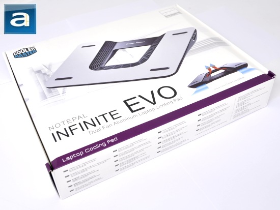 The Cooler Master NotePal Infinite EVO is not the hardcore enthusiast gamer's cooling solution like the CM Storm SF-19 Strike Force reviewed back in November of last year by my colleague Preston. Instead, by looking at the box, we can easily make the assumption that the Infinite EVO is a cooling pad targeted to those who want the comfortable ergonomic and cooling efficient feel, with the added pleasure of having a few more extra features that are usually not found on most cooling pads. The box characterizes the unit fairly well on the top, briefly stating some of features as well as the cooling technology under the hood. Cooler Master has done fairly well with the retail box design for the NotePal series, retaining a very professional look that is not overcrowded with text and information, like some products we have seen in the past. Let's briefly look over the features and specifications of the Infinite EVO, as found on the manufacturer's website:
