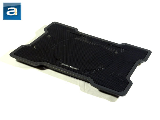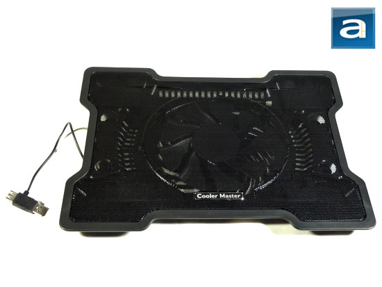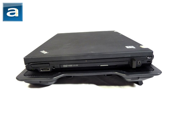 When you hear a name like X-Slim, you can pretty much sum up the design from that alone. The shape of the cooler is sort of like an X that has been run over by a car and flattened out. No, I did not say I wanted to run over my ex; what were you thinking? The name boasts that it is slim, but I'm going to be pretty up front here. It is kind of slim at an inch thick, but at the same time, it's not very slim either. I have used a few laptop coolers before, and I will say an inch is pretty thin, but it really doesn't really appear that way for some reason. On the positive side, I still think it looks pretty good. The entire Cooler Master NotePal X-Slim is black, which I think works quite nicely with my Lenovo ThinkPad T410 laptop, which happens to be the exact same color. I have a feeling they had some top secret meeting late into the night to plan this intentionally, haha. However, the more probable answer is it just happens to be coincidence, because black is just too common of a color. Typically, you find rubber pads on the top of a cooler to elevate the laptop, and provide some traction in the meantime. Just like how wind blows up a girl's dress, it ensures good airflow underneath the laptop. (You really shouldn't be looking there all the time. – Editor 1) (Ugh, not another one of your skirt similes. - Editor 2) The X-Slim decided to be different and use the metal mesh over the entire top surface with a few depressions near the center. This creates a gap between the laptop and the X-Slim for even better airflow. It is an interesting design, and some good innovation ideas from Cooler Master. This design means it can accommodate small laptops, but will also quite handle monstrous 17 inch laptops nicely.