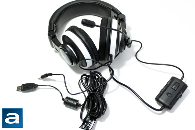 Looking at the entire headset, I guess I will start from the bottom, and look at the two connectors at the very end. One is a male USB 2.0 plug, and the other is a 3.5mm auxiliary input. Ask me which one I would first try plugging into a computer, and I would say the 3.5mm cable. However, I am wrong -- the USB plug is actually used for daily operation on the computer. In fact, the 3.5mm plug does not come into play until the Cooler Master Storm Ceres 500 is used with an Xbox 360 or PS3. Both of these plugs are connected via a thin rubber-coated wire that I can see will be easily prone to breaking. For the unit we received, both of these thinner wires were very stiff and I was almost more afraid of cracking them than ripping them. After about two weeks of usage, the cable holding the 3.5mm plug is still extremely stiff. I hope this is an isolated case, and other Ceres 500 headsets are not affected by this. Heading up the wires, they both meet together at a Y-connection. The wire past the Y-connector is much more substantial and durable. This cord is spans approximately three meters in length.
