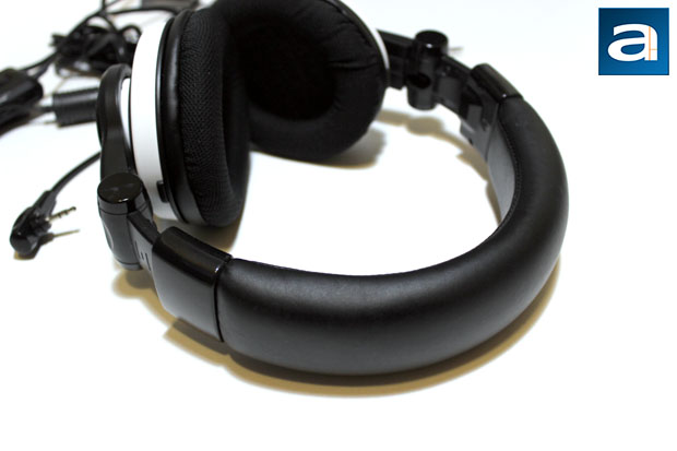 The Cooler Master Storm Ceres 500 is what I would call a blend between the stereotypical gaming enthusiast headset and the casual, everyday headphones. While it is not as conservative as the SteelSeries H Wireless, it definitely does not try to attract attention. On the left side the glossy microphone protrudes out, and the right side has another glossy surface with the CM Storm logo placed on it. Both of the sides have a white rim, with black mesh inside, creating a real nice effect with the contrasting colors on each ear. Speaking of which, there is a lack of any colors overall, with just white and black all over. This makes for a Star Wars Storm Trooper-esque look, and matches up quite well with a desktop chassis I reviewed last year around this time, the Cooler Master Storm Stryker. While some may see this as uninspiring, I would argue that it keeps the entire device clean and casual. Other small cues like wrapping the entire top in pleather or making dimples to mark how far the headset has been extended make the device seem quite a bit more refined. All in all, I really like the design of the Cooler Master Storm Ceres 500, as it takes cues from both the gamer and the conservative book.