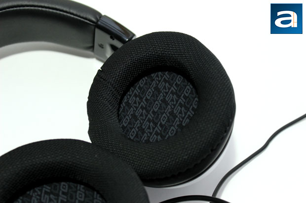 The next thing to look at is the ear pads. Unlike the Ceres 400, this headset actually has removable earmuffs. This means the user can remove the ear cups and replace them with other materials such as leather, which offer better sound isolation for some users. The padding is a fabric covering, with a pleather-like lining around the edges. Inside the pads are CM Storm labels, which make for a nice effect, especially since the word Storm is more pronounced than CM. As for the cups, they are able to fold flat, albeit in only one direction. They also allow for tilting to accommodate different sizes of heads and ears. The cups can also be extended within a range of 40mm for each side, and can be folded into the headband to allow for a more compact traveling headset. For your information, the CM Storm Ceres 500 utilize 40mm drivers, with a frequency response rating of 20Hz to 20000Hz. Rated impedance is 32 ohms, and the headset has a sensitivity of approximately 116dB at 1 kHz.