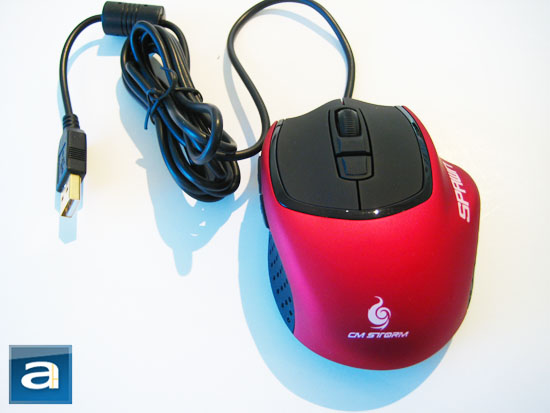 When looking at the Cooler Master Storm Spawn from a design perspective, it certainly feels like a gaming mouse, starting with the slick red design on the body of the mouse in conjunction with a distinct contrast of black in various locations around it. If I had to compare this mouse in terms of design to other mice, this one definitely takes the case, thanks to its bold red and the dark black color scheme. With this in mind, let's take a deeper look into the construction of the mouse itself. The Cooler Master Storm Spawn is primarily made out of plastic, which is the main material used on almost every mouse since forever. The surface of the mouse is covered in a coated plastic that gives better grip similar to the coating found on the Mionix Naos 3200 and Mionix Naos 5000. Along the sides of the mouse are also two patches of rubber for maximum comfort. Not only does this mouse take from the good grip design of the Mionix Naos series of mice, but its form factor is also eerily similar. The mouse fits a right hand perfectly, as it is designed to accommodate the natural shape of your palm as were the Mionix series of mice. The only flaw with this palm grip design is that it makes the Spawn only usable by 'righties' by excluding all the 'lefties' from even attempting to use this mouse. On the other hand -- no pun intended -- most left handed people I know use their right hand to mouse anyway, so this should not be a significant issue. There is a curve on both the left and right sides of the mouse to rest the ring finger and thumb, respectively. Finally, the pinkie is rested on the rubber coated side grip on the right side of the CM Storm Spawn. This overall shape is very well thought out, and provides maximum comfort for the entire hand while using the Cooler Master Storm Spawn. This is all true, of course, if you ignore the length of this mouse. We will cover that in detail later in the Testing section of this review.