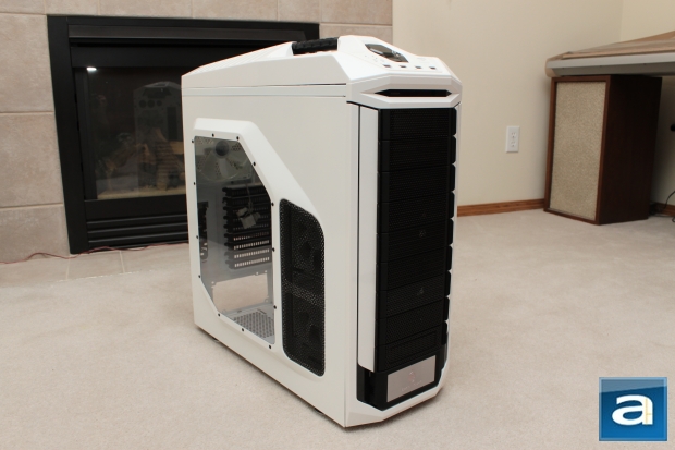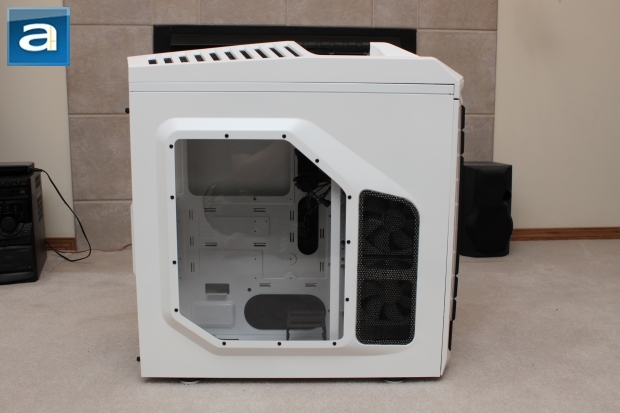 Underneath this control panel is a docking slot labeled "X-DOCK", which allows for quick external docking for any 2.5" drives. I quite like this innovation -- though not necessarily new -- as it offer users the ability to easily move their drives around, including any SSDs you may have. As mentioned prior, there is a large handle that is located at the top, which makes moving the case around very easy. This hulk of a case can break your back, especially when fully loaded. But the handle is placed perfectly so that the weight of the case is balanced and easy to carry. After seeing many friends move their full-case computer to LAN parties, I will say that this handle is extremely useful, and should be placed on all enthusiast cases. In addition, the top vent also has a sliding dust filter. It's really easy to use, since it makes it easy to clean.