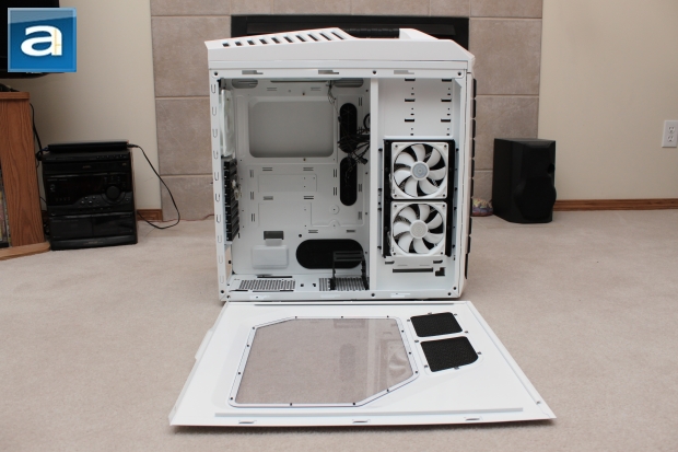 Having a fan on the top of the case is starting to become more common. Much like the CM Storm Trooper, the Stryker includes a 200mm fan at the top with a 140mm rear exhaust fan. This will allow for more than sufficient airflow around the CPU. The large room in height allows the Stryker to house aftermarket coolers up to a maximum of 186mm. As well, there is a gigantic opening on the tray, allowing for CPU backplates. This will accommodate any aftermarket cooler you may use.