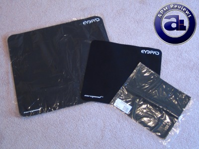 A close look at the mousing surface of the Eyepads. It's not too dissimilar to the SteelPad QcK+; which has a consistent texture and should be desirable for proper optical/laser tracking. All three Eyepads are very thin and can be easily rolled up.