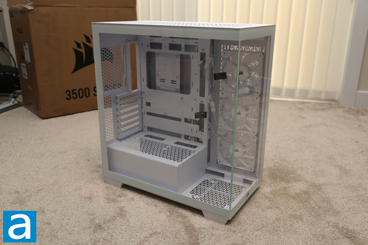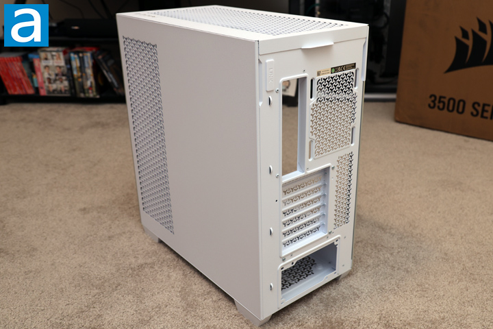 If there is anything common about fish tank-like cases, it is the fact most of them come in a very box-like shape. As two of the sides are made out of glass, there is less flexibility in terms of their bends or curves, so the result is a rectangular prism. This means there are 90-degree corners and edges. As you can see, this is the 3500X ARGB in white, but this case is also available in black. In addition, there are two other versions of Corsair 3500X, including the base and the iCUE Link RGB. From a physical stance, the only difference between these three versions are the fans included, so I will point that out when we get there. Otherwise, the non-windows sides are all matching in color with lots of perforations to allow for air to flow through. From this angle, the real appeal comes from the unobstructed view into the build, but you will not fully appreciate it until there is a system inside. As aforementioned, we have seen other cases like this, including the Thermaltake CTE E600 MX and the Antec C5 ARGB.