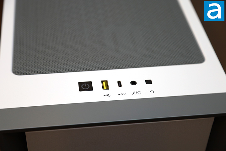 A power button, USB 3.1 Type-A port, USB 3.1 Type-C port, combination audio/microphone jack, and a reset switch are located near the front of the top panel. A white power indicator LED is inside the power button. There is no HDD activity LED. It is really nice to see a USB Type-C port, since it is 2021 and not 2011, although 2011 did not seem too long ago for me, haha. However, I believe there is still some room to improve for this layout. Normally, a mid-tower would have two USB Type-A ports. I understand we still have two USB ports on the 4000D White, just that one being Type-C, but I still want to have a pair of Type-A ports here. For me, the more ports the better. The combination audio/microphone jack is another nice feature of this product. For most of us, we have both laptops and desktops, and laptops are commonly equipped with a single audio/microphone jack only. When we buy a headset, we definitely want something that can be used on both laptops and desktops, so it will be inconvenient if we have to deal with the situation where the laptop has a single jack, while the desktop has a dual jack. I do acknowledge many gaming headsets come with a separate headphone and microphone plug, so it could be inconvenient to some. An included Y-split cable will rectify this situation.