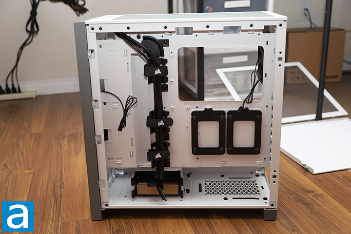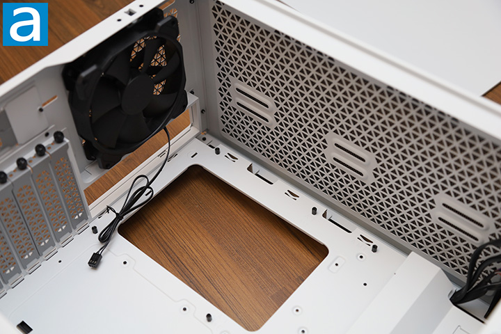 Two large opening for routing your PSU cables is appropriately placed adjacent to the expected location of your power supply, as shown in our photo above. Since the shroud separating the main chamber and the power supply chamber is fully ventilated, there is only one thermal zone inside the Corsair 4000D White. Even though there are no rubber grommets on the openings, the metal is not sharp at all. There is no need to worry about the safety of the cables or your fingers during installation.