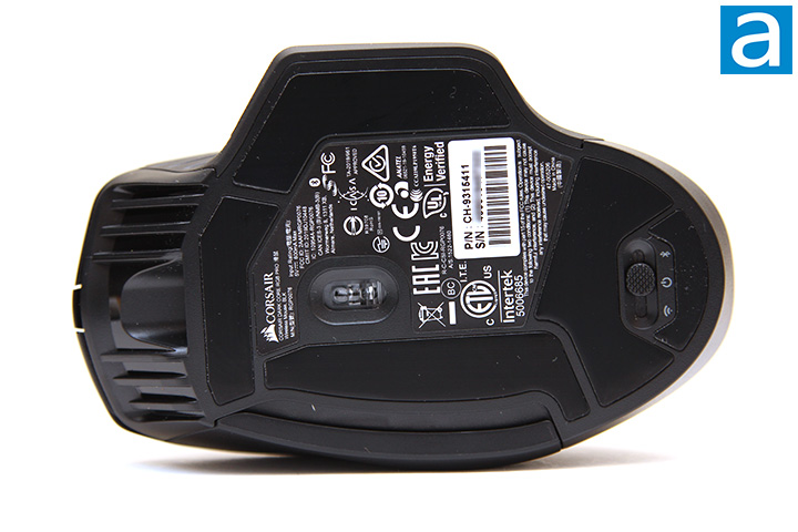 The Corsair Dark Core RGB Pro is powered by a PixArt PAW3392 optical sensor capable of sensing up to a jaw-dropping 18,000 DPI sensitivity, but can drop as low as 100 DPI at 1 DPI increments for those who want it. Yes, you read it right -- 1 DPI increments. It promises true 1:1 tracking with zero hardware acceleration, 450 inches per second tracking, and acceleration of up to 50G. 1000Hz polling rate is standard, but can be lowered to 500Hz, 250Hz, or 125Hz. One unconventional feature is you can boost the polling rate to a whopping 2000Hz using the Slipstream wireless technology. A slider switch at the bottom lets you switch between Slipstream, Bluetooth, or turn the mouse off.
