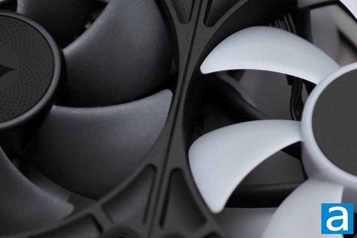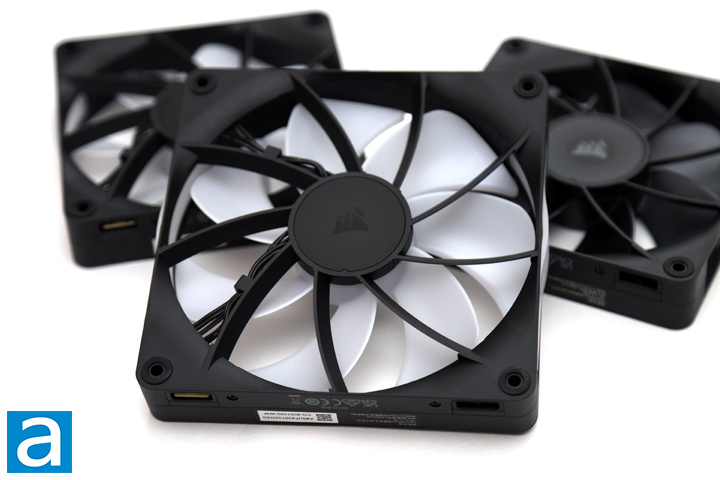 Examining the party of fans Corsair sent us, one can spot the similarities between the three iCUE Link RX fans. The non-illuminated model, the RX120, has an all-black design with a black frame and impeller. Crafted from glass fiber-reinforced liquid crystal polymer, this impeller is made to not bend or buckle under pressure. On the other hand, the RX120 RGB and RX140 RGB have a translucent impeller and side panels on the frame, allowing for the lighting effects to subtly bleed through. These side panels are also removable, providing flexibility according to preference. It is worth mentioning that the RGB versions of the RX line are available in black or white, while the non-RGB variants are exclusively black. In the middle of each fan, Corsair's sails logo is placed on both sides in an understated gray against the black backdrop. In each corner, there is a circular rubber pad around the mounting hole. This provides dampening for the fan by reducing vibration and the resultant noise that the fan may make when affixed to something less flexible. Overall, the fans are pretty typical in terms of appearances.