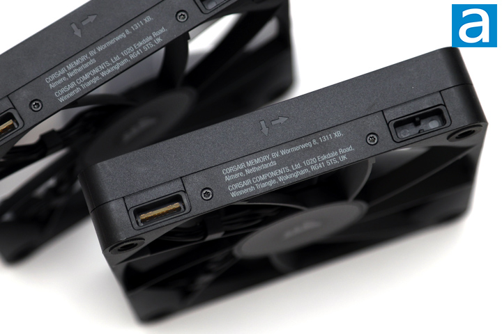 One notable aspect of these Corsair iCUE Link RX fans is their ability to be daisy-chained together via a proprietary connector, allowing for a single connection to control multiple fans. Unlike some other fans, such as the Thermaltake SWAFAN EX14 ARGB Sync, which use magnets and pogo pins for connecting, the iCUE Link RX fans rely on physical connections. Each fan has two slots on the side. One slot houses an exposed PCB with metal contact points. The other slot is an empty space. With plastic connectors, you can connect the same slots to each other. These connectors are distinct from each other, preventing accidental mixing.