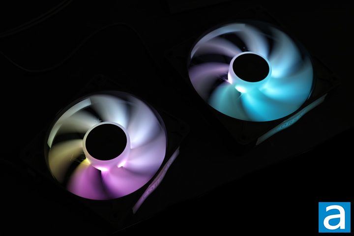 The lighting on the Corsair iCUE Link RX120 RGB and RX140 RGB offers an overall impressive visual experience. Each fan holds a total of eight LEDs inside the impeller, emitting light from the center. While this configuration results in some gaps between each light, it still produces a captivating effect. Both the 120mm and 140mm fans boast vibrant lighting and illuminate the entire impeller, extending from the center to the tips of the blades. The translucent side frames further enhance the lighting by creating a diffused effect for a noted touch of elegance.