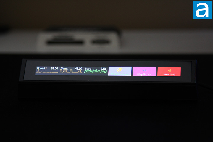 The above photo shows the Corsair iCUE Nexus installed into the standalone base. If you do not own a compatible Corsair keyboard and do not mind a bit of extra clutter on your desk, this would be the way to go. The setup was overall quite easy; I will go into the configuration process in just a moment. You can configure different screens to swipe between. As far as the LCD screen itself is concerned, I think there is quite a bit of room for improvement. For one thing, the iCUE Nexus suffers from very poor side-to-side viewing angles. I have not seen an LCD screen with poor viewing angles -- especially side-to-side -- for probably more than a decade, but this would have been it. Unless you view it straight on, the color is going to distort like an old personal digital assistant if you still remember what that is. Another issue is the color depth is also poor. It is specified at 262K colors, which is not a lot. Even your keyboard's RGB LED backlight has better specifications, but I digress. Beyond the specifications, the poor contrast and not-very-black blacks are very noticeable. When swiping between screens, there was a little bit of lag with the 24Hz screen, so it does not feel very smooth. Lastly, its 640x40 resolution somehow feels very low, even though the pixel density is not bad at 128.36 PPI. Maybe the screen quality is just not that great, so it made it a bigger problem than it really is. For a screen that carries an MSRP of $100, I would expect much better performance. OLED, anyone?