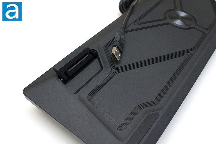 Taking a peek at the bottom of the keyboard, we have two rubber feet and two more rubbery flip-out feet. The feet on the bottom side are decent sized, doing an excellent job of keeping the keyboard in place. There should be no noticeable unintentional sliding. There is no cable raceway to manage the cable on the bottom, but it is not a feature I find myself commonly using. The addition would have been nice, but not necessary. The cable is connected directly to the keyboard on the top left side, making routing the cable quite simple. A separate braided USB Type-C interface would have been appreciated as it would provide better durability, but the simplicity of the connected cable is sufficient.