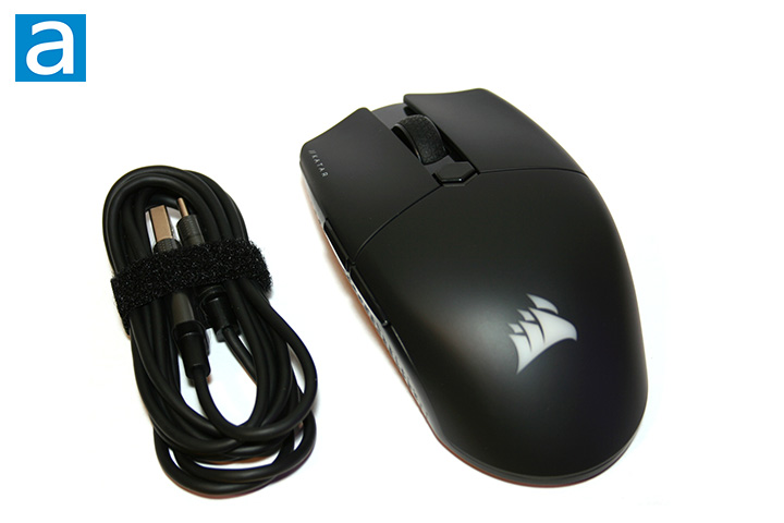 A regular cable is provided for charging the Katar Elite Wireless or using it as a wired mouse. A braided cabled would have been better, since a braided cable also provides less friction than a regular rubber-coated cable, allowing for smoother mouse movement. On top of that, braided cables offer better build quality when compared to regular cables due to having greater structural integrity. Since this mouse is meant to be used wirelessly though, this is not a big deal. The 1.8m length is industry-standard and does the job well if you need to charge your mouse in a port that happens to be further away. The cable connects to the mouse through a USB Type-C connector and to your device through a USB Type-A connector with the Corsair logo placed on the end. While adding gold plating would have looked nice, it would not affect performance. Not having a gold-plated connector makes sense in this case as it adds no benefit, but raises the cost. The cable is very flexible, making it easy to run through difficult areas when connecting it to a USB port.