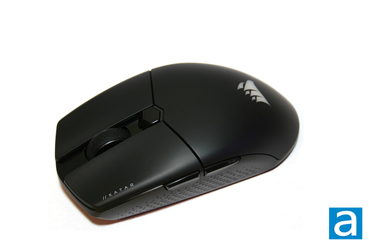 The Corsair Katar Elite Wireless has smaller physical dimensions compared to an average gaming mouse. Coming in at 64.2mm in width, 115.8mm in length, and 37.8mm in height, this device is definitely on the smaller side. Corsair describes it as a "compact lightweight gaming mouse” on their product page. I agree with Corsair’s claim of the Katar Elite Wireless being a lightweight mouse, as it weighs only 69g. This weight is very light for a wireless mouse -- almost as light as the wired ROCCAT Burst Pro, and even lighter than its wired counterpart -- and I really felt that when using it in various applications. Like most mice today, the weight is balanced to the center, meaning it will feel balanced when you lift it up. When using the Katar Elite Wireless, I found that I was most comfortable using a claw or finger grip due to its small size. I still found this mouse to be generally comfortable to hold for short to moderate periods of usage, even though I am a person who prefers using a palm grip.