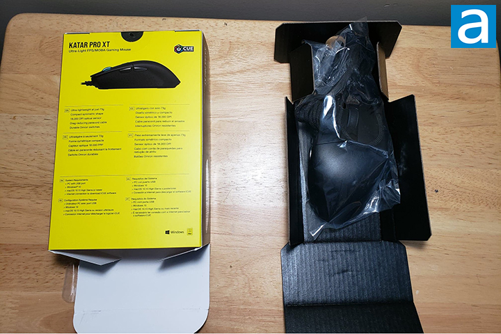 Our review unit of the Corsair Katar Pro XT arrived here in Calgary, Alberta, Canada from the company’s American headquarters in Ontario, California using UPS Standard. The shipping box was in decent condition with a few marks and scuffs alongside the corners. Generally, I had nothing to worry about as the marks were not severe enough to damage the retail box. With the shipping box protecting it so well, the retail box arrived in perfect condition. I had no complaint about the shipping.