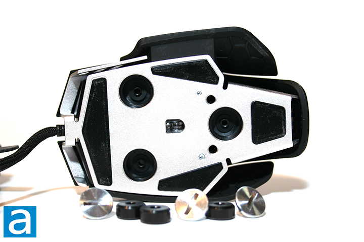 As mentioned earlier, the weight of the Corsair M65 RGB Ultra can be tuned by the weighted screws and plastic rings that can be attached at the bottom. If the screws are screwed in all the way, the M65 RGB Ultra weighs in at 115g, which is fairly heavy for a wired mouse in 2022. Users can loosen the screws to let the mouse weigh less or take out the screws completely, which puts the mouse at its minimum weight of 97g.