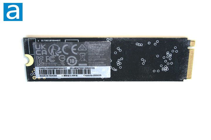 The Corsair MP600 Core XT NAND flash memory contains the label "IA7HG96AZA". These are Micron-manufactured 176-layer quad level cell chips. There are a total of four NAND flash memory chips on this drive. The rated write endurance is rather low at 450TBW, which equates to about 246GB per day for five years. This is a fair bit lower than other budget drives like the WD_BLACK SN770 NVMe SSD 1TB and Crucial P5 Plus 1TB at 600TBW. The XPG Atom 50 1TB is rated even higher at 650TBW, and these are just the pure magnitudes, with all these models having half of the capacity of the MP600 Core XT 2TB. On a per-TB level, the MP600 Core XT is comparable to the Crucial P3 Plus 1TB. 48GB out of the 2048GB total capacity, or about 3%, of the drive was used for controller overhead. The actual usable space is 2TB, as advertised. You will see 1.81TB in Windows. The average power consumption is specified at 4.3W.