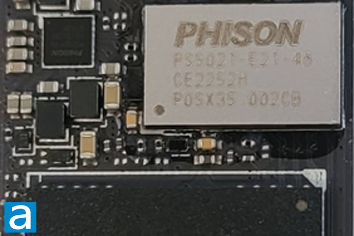 Upon closer inspection, we can see some key components on the Corsair MP600 Core XT 2TB. We see a Phison controller with the label "PSS021-ES1-46". Although this is not apparent at first, this is the Phison PS5021-E21T controller. As a cost-saving method, there is no DRAM for this controller. Generally, DRAM on SSDs is utilized to write data to the drive as a cache. A table is stored that maps the physical logical block addresses located on the NAND flash memory. DRAM IC chips are not cheap though, so it is not uncommon for budget drives to keep these out. This does come at a cost of performance, as DRAM-less SSDs will store this mapping data directly on the NAND flash or your computer's RAM via something called the Host Memory Buffer, which is quite a bit slower than onboard DRAM. In the case of the Corsair MP600 Core XT, it uses an HMB to compensate for the lack of DRAM.
