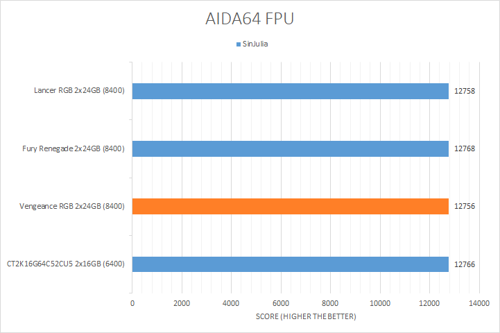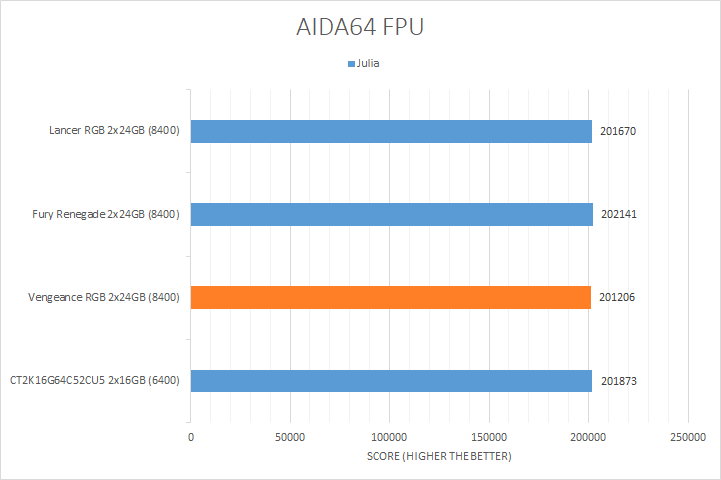Usually, AIDA64's FPU benchmarks are the least exciting of all when writing a RAM review. This is because the way results are obtained is usually highly dependent on the tested processor, so much to an extent that the outcome is typically irrelevant to the speed or latencies of the installed memory modules.