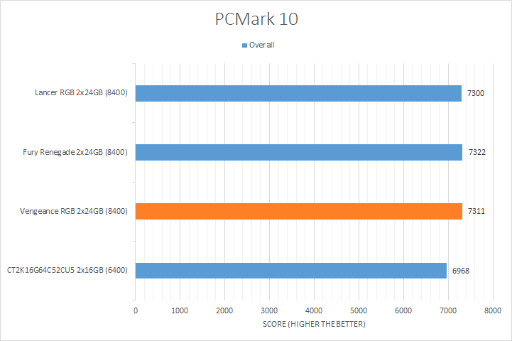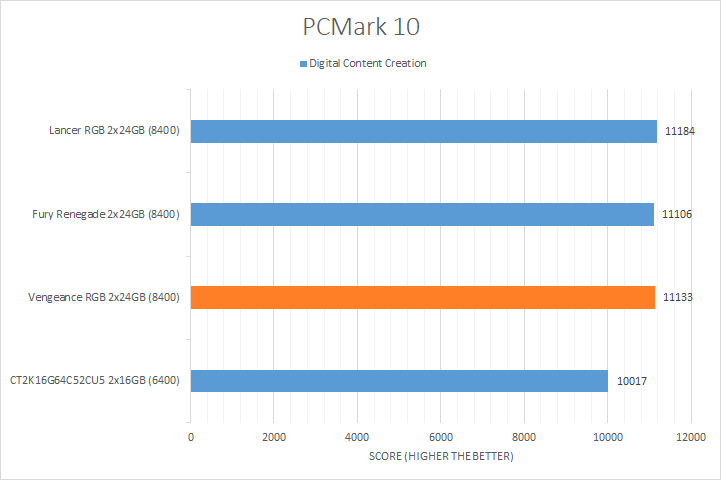 There was noticeable variance in the results of the tested kits, which you can see in our graphs above. The DDR5-8400 Corsair Vengeance, Kingston Fury Renegade, and XPG Lancer CUDIMM RGB kits led in all the tests by a significant margin against the DDR5-6400 Crucial CT2K16G64C52CU5, some more than others, showing the Intel Core Ultra 7 265K took advantage of the extra memory bandwidth. There was no consistent winner among the tested DDR5-8400 kits, as all kits won some and lost some for a tremendously close overall score.