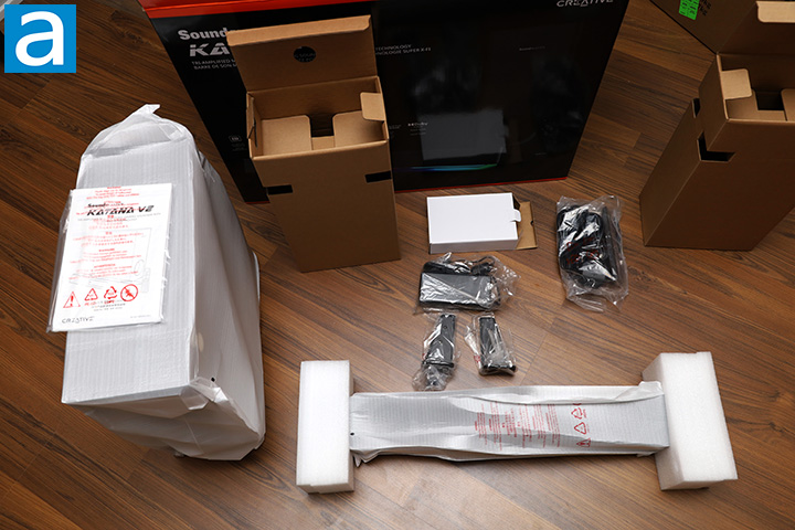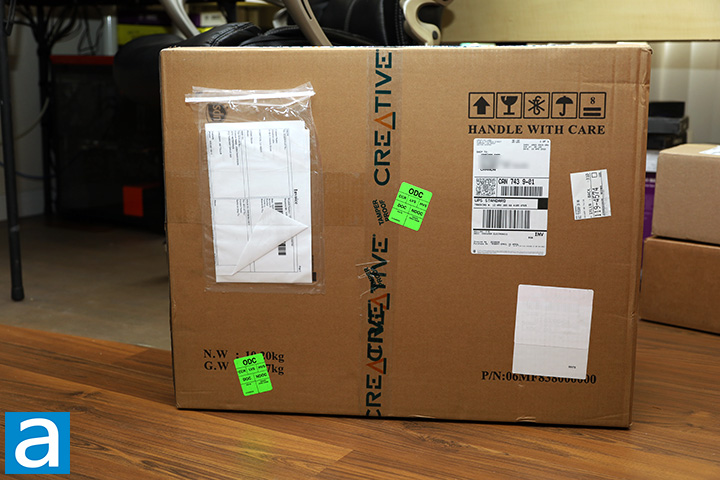 Our review unit of the Creative Sound Blaster Katana V2 came in a large brown corrugated cardboard box from the company's logistics partner in Compton, California. Everything arrived in excellent condition to us here in Calgary, Alberta, Canada via UPS Standard for our review today. The shipping box was made to be an exact fit for the retail box inside.