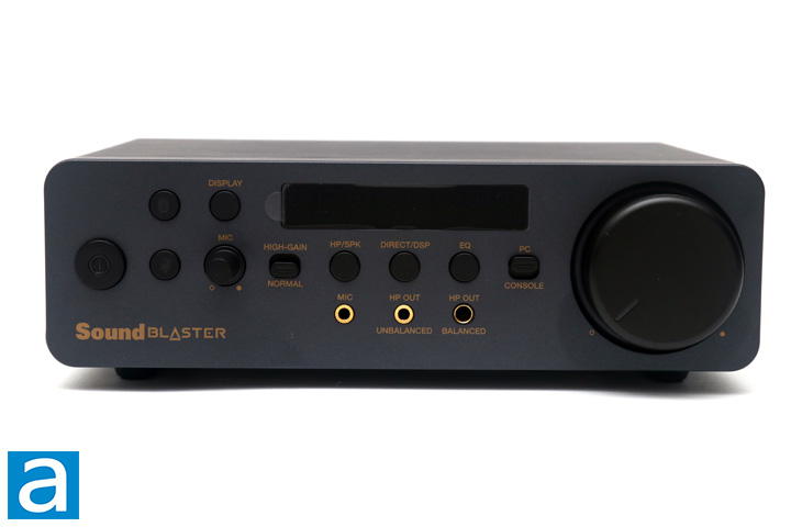 The entire Creative Sound Blaster X5 is clean in its looks. With a dark gray exterior that has tinges of blue, it does not draw much attention to itself. All of the buttons and user inputs are black, while the text that denote their function has a gold finish. While this is pretty easy to see in the photo, this is under more ideal lighting circumstances. In any darker lighting, the font becomes quite a bit harder to read. I would have preferred a lighter color for the labels. In the middle, we have a display that glows white and is generally bright enough to view. It shows different statuses based on the last pressed button. Otherwise, most of these buttons and knobs are still large and easy to press. They offer a decently satisfying click, but the best one is the power button, which is a low-profile push button. The large volume knob offers a decent amount of resistance. In appearances, I feel like the Creative Sound Blaster X5 is a nice balance between clean and retro.