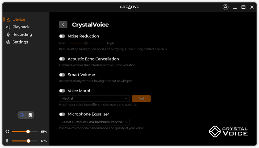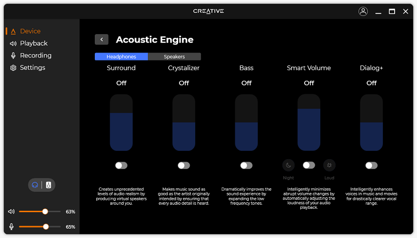 All in all, I am quite impressed with the Creative app for its depth of details to change without necessarily overwhelming users. There is a lot of subtitles to help users identify what each setting does. The granularity of changes users can make while also informing users about these changes sets a nice balance for amateur and well-versed users. I also really appreciate the dark mode of the Creative app, which is seemingly lacking from the competition.