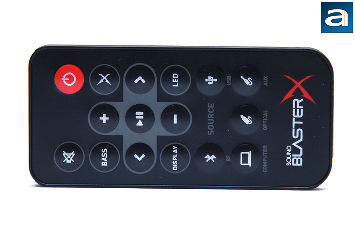 Creative includes a remote control to go with the Sound BlasterX Katana, shown in our photo above. The remote control is made out of plastic, powered by a single CR2032 battery, and has a relatively simple layout. Everything should be self-explanatory other than a select few. The "X" logo underneath the power button is the same as the mode button on the soundbar itself that allows you to toggle between EQ presets, which includes Neutral, Gaming, Concert, Cinema, and Night. The button labeled "Display" toggles the seven-segment display on or off. Lastly, the "LED" button is used with the Aurora Reactive Lighting System. The Katana is equipped with 49 programmable LEDs underneath the soundbar to provide RGB underglow effects with 16.8 million colors. Preset lighting effects include Wave Ice Blue, Wave Rainbow, Solo Orange, and Aurora. These lighting effects are independently set and associated with different EQ preset modes. They are not user-customizable, nor does it have visualizer effects. Of course, you can turn them off if you find it distracting.