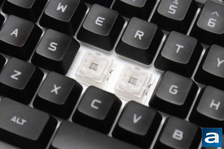 Before continuing on, one of the main selling points of the Creative Sound BlasterX Vanguard K08 is the mechanical key switches. There are three main types of keyboards in the market today. The cheapest but most common is the membrane keyboard, which is the easiest to make, but also has poor typing feel and response due to squishy keys. Next is a scissor switch keyboard. This can be thought of as an enhanced rubber dome with two extra interlocking plastic pieces connected to the key and the keyboard. This creates a better tactile response and typing experience in comparison to the aforementioned membrane. Mechanical keyboards, such as the Sound BlasterX Vanguard K08, costs the most, because each key switch is an independent part. These switches are generally composed of a base, stem, and spring, with varying degrees of tactile and audible feedback.
