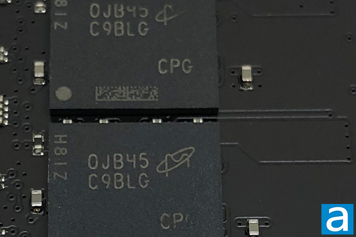 A closer look at the memory chips on the Crucial Ballistix DDR4-3600 2x32GB dual channel memory kit. The photo above should be quite clear -- it says "C9BLG" on each IC. These are Micron manufactured chips identified as CT40A2G8VA-55M:B decoded from the FBGA inscription, with eight 2GB chips on each side for a total of 32GB on each DIMM. As mentioned on the previous page, these RAM modules run at a frequency of DDR4-3600 with 16-18-18-38 latencies. They operate at a stock voltage of 1.35V, which is right at the Intel maximum safe limit and AMD recommendation of 1.35V. Here are the listed features for the ICs, as obtained from Micron's website: