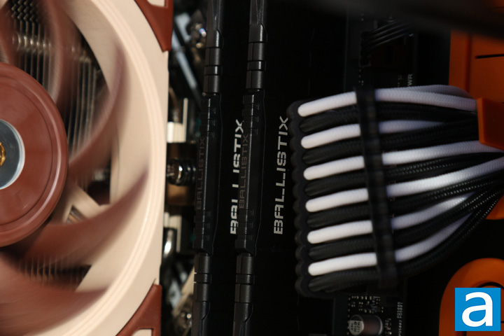 The Crucial Ballistix DDR4-3600 2x32GB, being a part of the latest enthusiast DDR4 line from the company, utilizes a set of medium profile heatspreaders. My above photo shows two kits for a whopping 128GB of DDR4 glory. Meanwhile, the RAM itself is not designed to draw attention with its black heatspreaders and white inscriptions. I found it quite conservative looking, but the aluminum pieces are distinctively shaped and molded to accentuate its rugged industrial or military look for a little more visual flare and complexity. Aluminum is lightweight and serves as a decent heat conductor, while the ventilated heatsink design is for heat dissipation. The Ballistix is only about 0.75cm taller than modules with no heatspreaders at all. This is useful for systems equipped with side mounted CPU heatsink fans adjacent to the memory slots, as it can piggy-back off the generated airflow. Since the heatspreader height is very moderate, it is hard to imagine the Ballistix will interfere with any modern processor cooler. Whether you like to call it marketing gimmick or whatnot, it is impossible nowadays to find performance memory without any form of a heatspreader attached. They do undeniably serve a purpose in dissipating heat, but for most memory modules, unless run at a voltage significantly over designed voltages -- which you will not, special thanks to integrated memory controller voltage limits on Intel and AMD CPUs -- this feature is certainly not a requirement. But I will admit they look pretty cool in any windowed chassis.