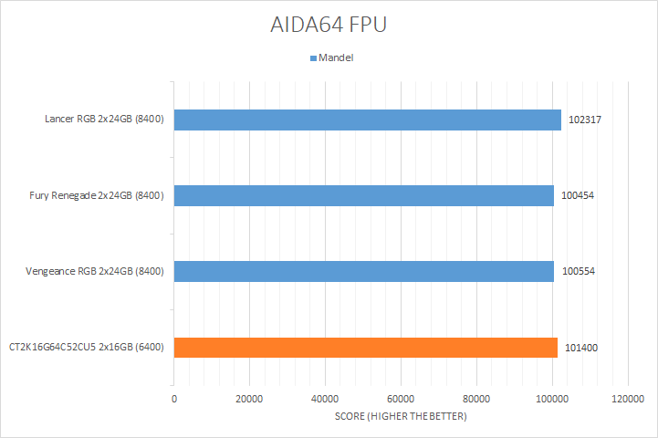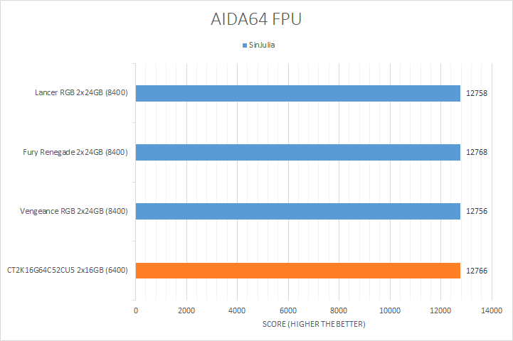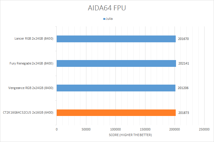 Usually, AIDA64's FPU benchmarks are the least exciting of all when writing a RAM review. This is because the way results are obtained is usually highly dependent on the tested processor, so much to an extent that the outcome is typically irrelevant to the speed or latencies of the installed memory modules.