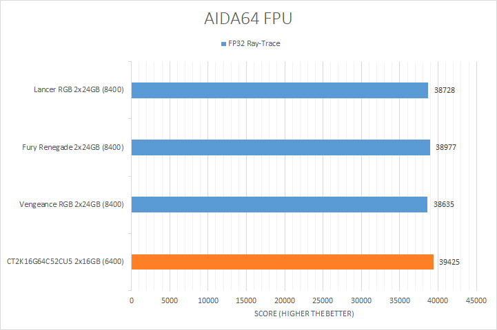 As you can see from our graphs above, all the results were within a few percent of each other. There were three results where the difference was more noticeable, particularly the Mandel, FP32 Ray Trace, and FP64 Ray Trace tests. However, there was little correlation with the memory bandwidth, as the DDR5-6400 Crucial led in the FP32 Ray Trace results, but fell behind the DDR5-8400 Corsair Vengeance, Kingston Fury Renegade, and XPG Lancer CUDIMM RGB kits in the FP64 Ray Trace benchmark. At the end of the day, they were almost all reasonably within the same ballpark as each other.