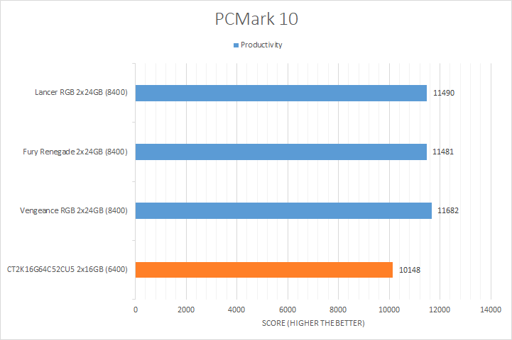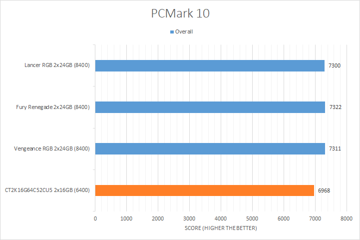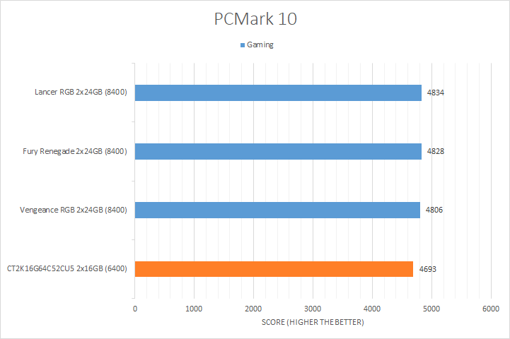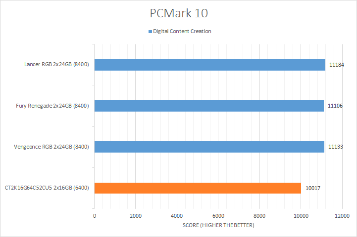 There was noticeable variance in the results of the tested kits, which you can see in our graphs above. The DDR5-8400 Corsair Vengeance, Kingston Fury Renegade, and XPG Lancer CUDIMM RGB kits led in all the tests by a significant margin, some more than others, showing the Intel Core Ultra 7 265K took advantage of the extra memory bandwidth. The Crucial CT2K16G64C52CU5 came in last, which was expected, since it was the only DDR5-6400 RAM in the compared products list.