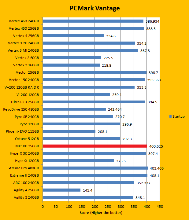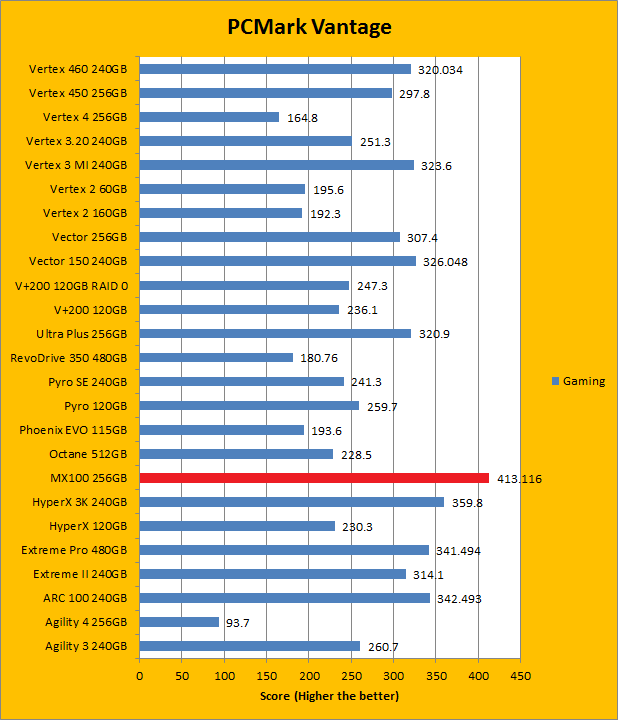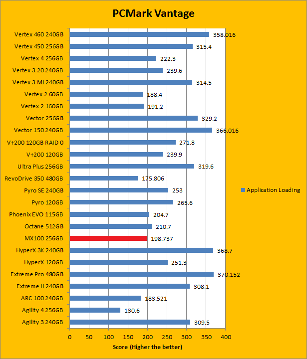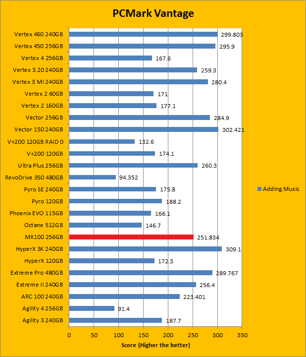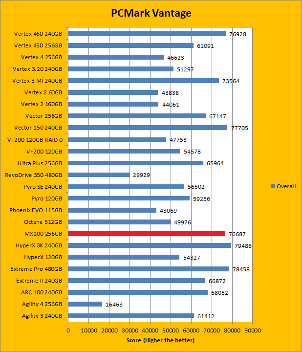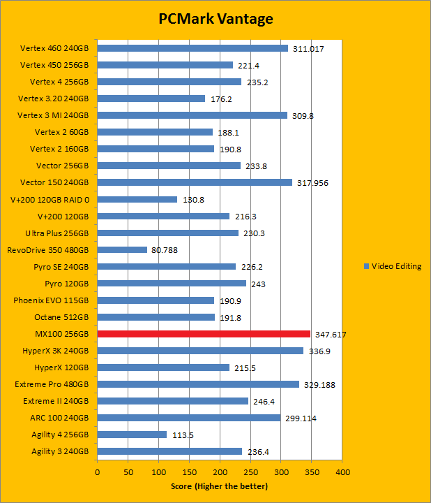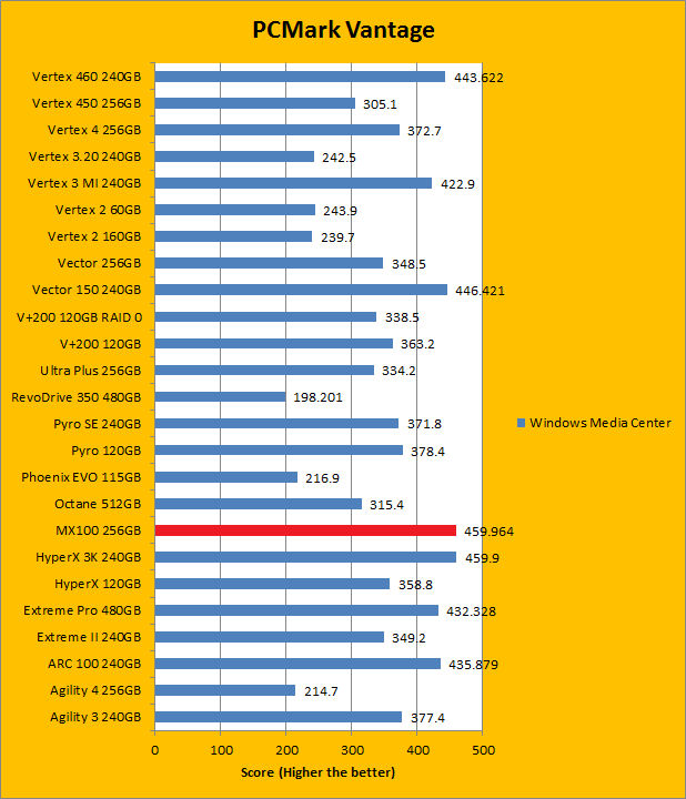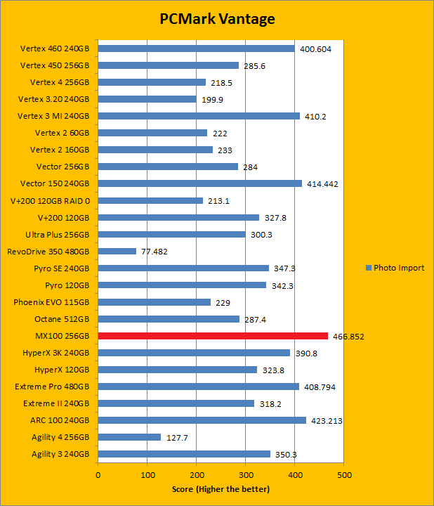PCMark Vantage aims to shed a little more insight into real life performance of your computer hardware by semi-synthetic means -- and all insight is good, right? The great thing about standardized tests is anyone can repeat them and get very similar results, given identical hardware. Well, I am not going to narrate the stuff above in detail, because we all know graphs are there for a very good reason. Just to give you a bit of insight if you are too lazy to go through all nine comparisons, the Crucial MX100 256GB performed extremely well against some of the best drives in the industry. PCMark Vantage uses some pretty simple simulations, so it is pretty optimized for single disks with relatively fast linear read (It does funny things when you got a RAID array though). The Crucial MX100 256GB easily beat the OCZ ARC 100 240GB in every single category, and kept up, if not posted better results, than many of the big boys on the chart today.