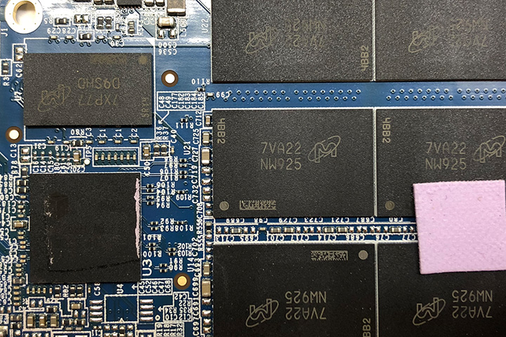 Moving on, the Crucial MX500 500GB's shell is attached to the aluminum backplate by screws and friction. As aforementioned, remove the screws and give it a quick pry, and you will be well on your way inside. In case you are uncomfortable with taking apart your brand new SSD even though it will not void your warranty, to save you some trouble, I cracked mine open to take some photos of its internals for you to see. As it is with many value-oriented and budget SSDs nowadays, you will not find a full-sized PCB, but rather, one that occupies only about two-thirds of the room inside. The heart of Crucial's MX500 500GB is the Silicon Motion SM2258 controller with a piece of thermally conductive pad between it and the enclosure, just like the BX300. The PCB itself is held secure to the shell by a series of adhesive thermally conductive pads. As the drive controller is fundamentally very important to any SSD, let us dig more into the details of its brain.
